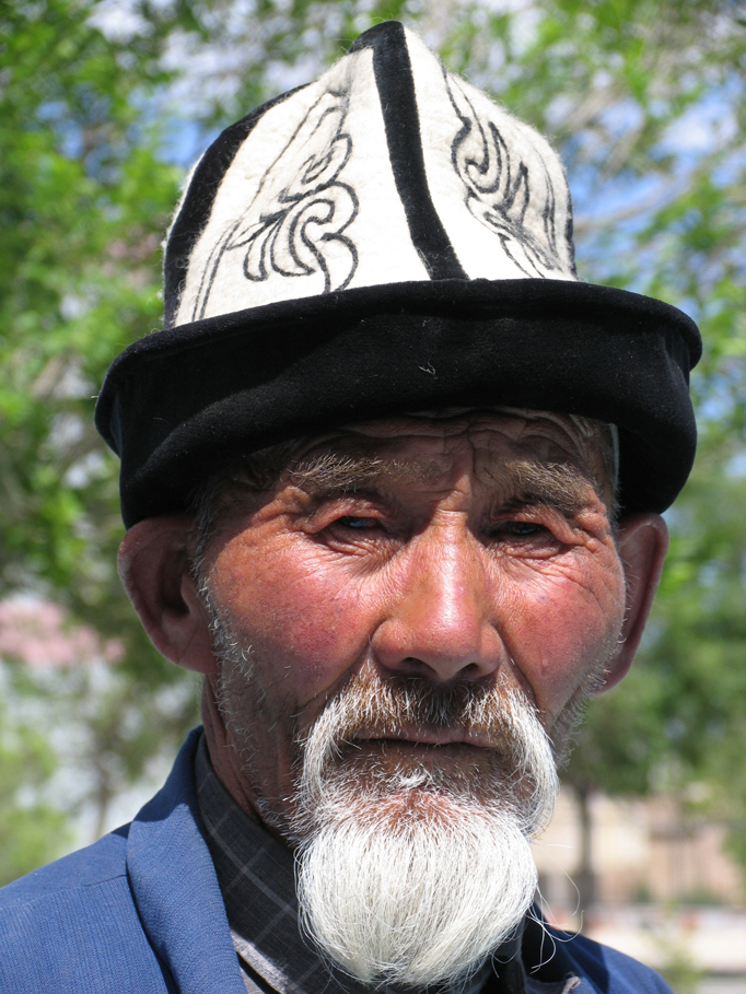 柯尔克孜族男子戴着白色毡帽(刘军摄)
