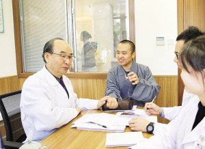 义诊医生为法师号脉。 厦门南普陀寺供图